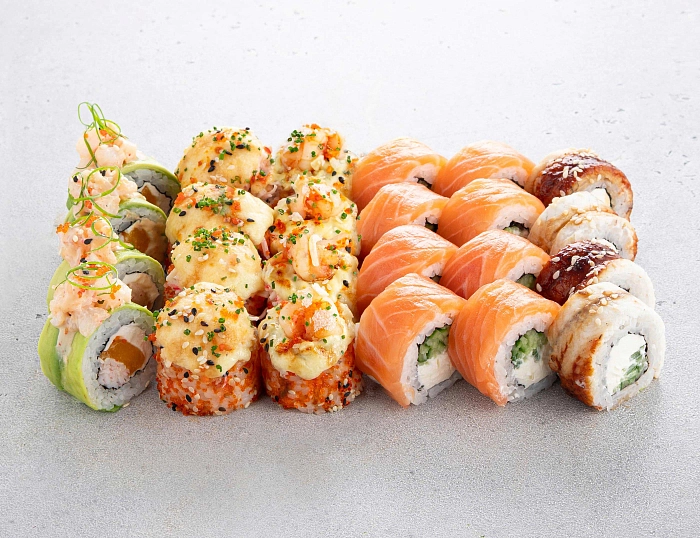 Создан для уютного ужина вдвоем или вечера только для себя. Нежные сочетания и много любимых вкусов: классические, запеченные и фреш роллы. Мы не забыли и про важные детали – в комплекте соевый соус, имбирь, васаби и палочки! Продумали все до мелочей и порадовали вас отличной выгодой.