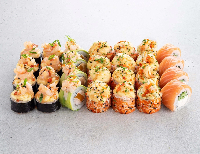Собрали в одном наборе самые сливки нашего меню! Классическая Филадельфия, которая покоряет своей нежностью, необычная экзотика в виде ролла со спелым манго и три безусловных любимца среди запеченных роллов. Идеальное решение, когда хочется попробовать только лучших из лучших!
