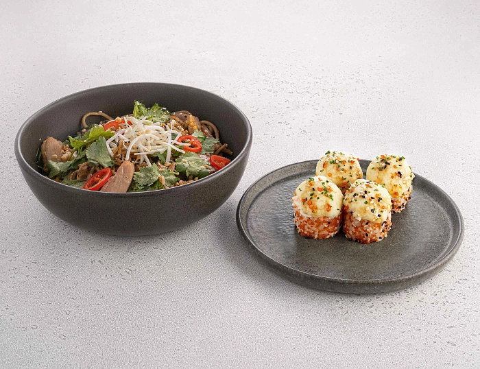 В обед так сложно сделать выбор – мясо или морепродукты? Пока другие ломают голову, мы берем все и сразу: горячую лапшу с курицей по-сингапурски и запеченный ролл с крабом и пармезаном.