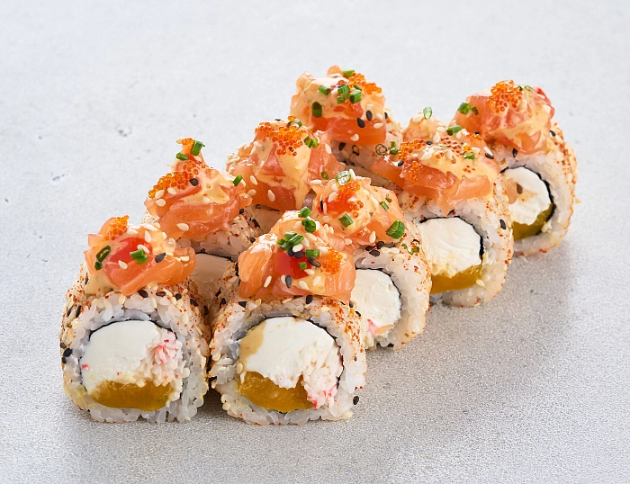 Острый ролл с лососем и манго (8 шт)