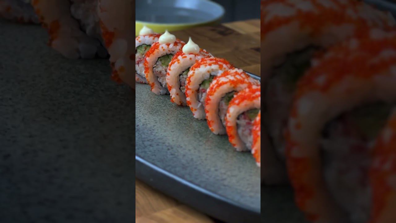 Все та же любимая «Калифорния», только круче. Внутри мясо камчатского краба, спелый авокадо и огурец, сверху одеяло из риса в яркой икре тобико. В шапочке чесночный соус, придающий особую пикантную нотку, а завершают композицию кольца зеленого лучка и лепестки роз.