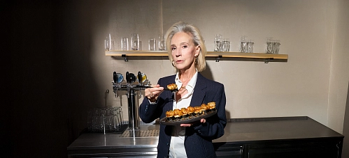 В шапочке – нежный чесночный соус, большие тигровые креветки темпура, микс соусов: сладковатый унаги и жгучий спайси. Последние штрихи – кунжут, китайский перчик и лук шнитт.