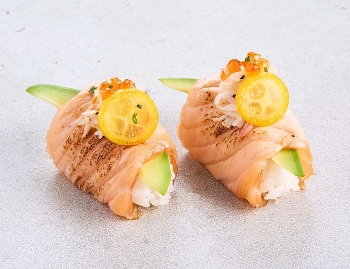 Суши с опаленным лососем и камчатским крабом (2 шт)
