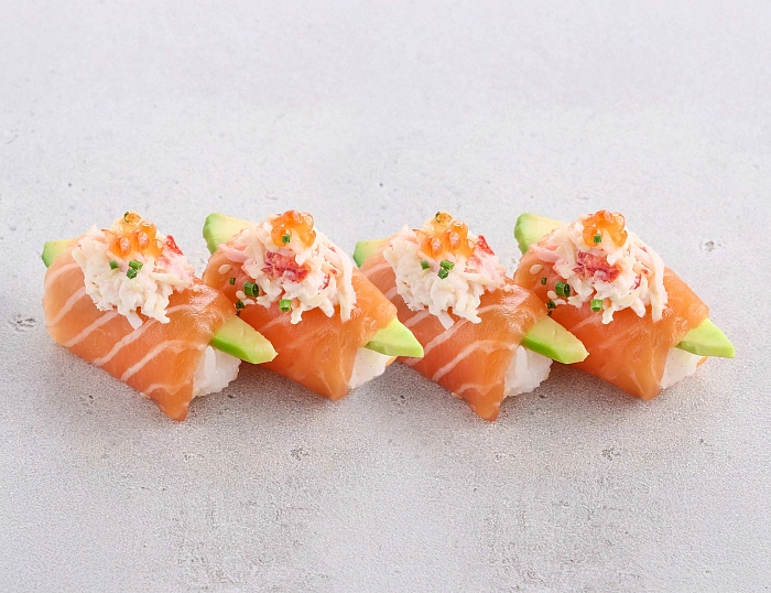 Суши с лососем и камчатским крабом (4 шт)