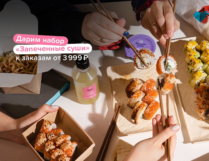 Важная Рыба рада, что вы вернулись! По такому случаю дарим промокод DINAMITADS на популярный темпура ролл со спайси креветкой при заказе от 2499₽.